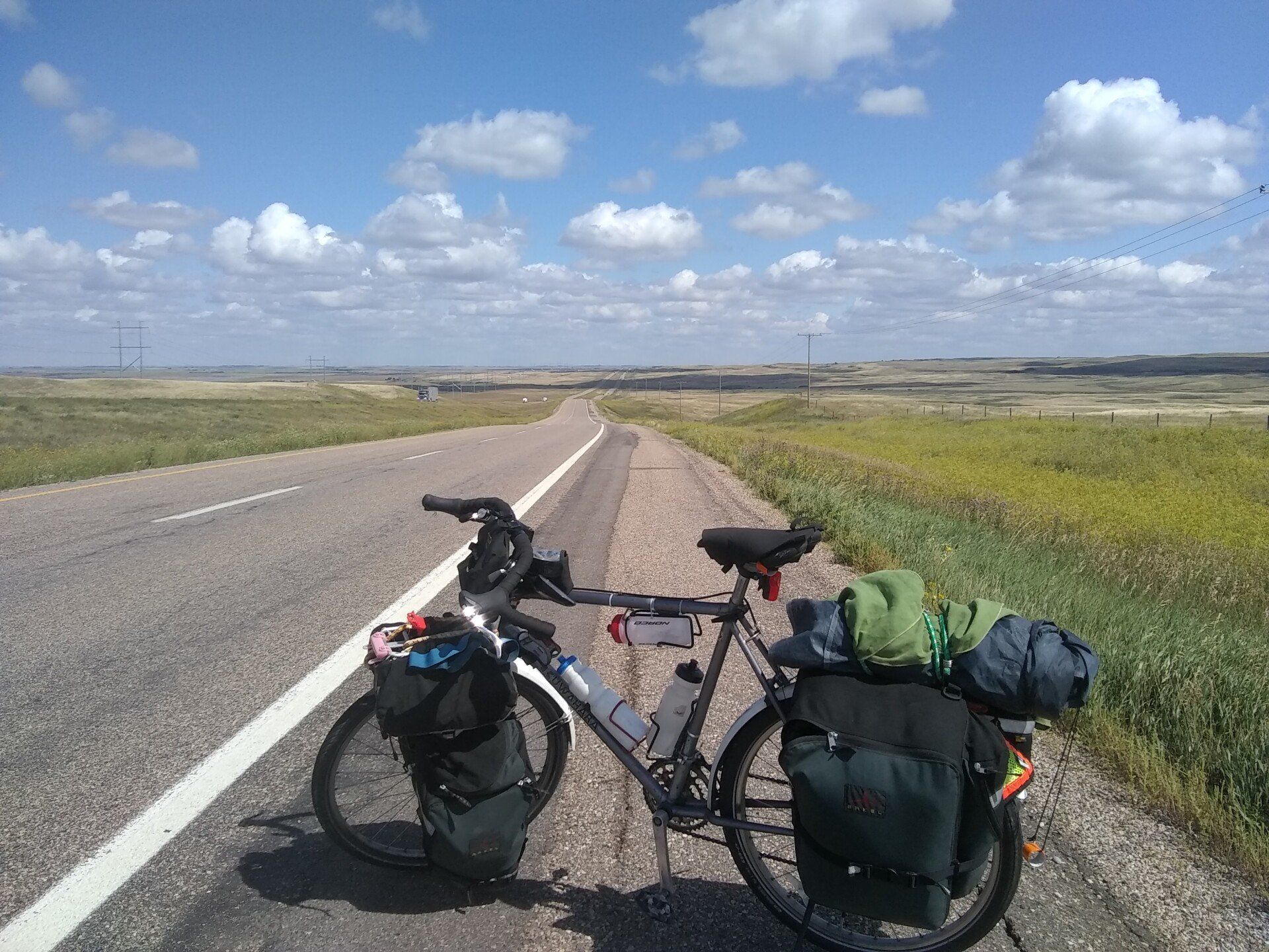 The wind I learned is easily the most important aspect of the cycle touring experience. It was with me in the mountains and I literally and metaphorically breezed through. It was against me so far in the Prairies and it felt like I was cycling uphill all day. I never had a chance to ease up and just coast. Even on downhills I had to pedal because the wind would cancel out the effects of gravity! The only blessing a headwind brings is it negates the heat of the sun, keeping me cool and not too sweaty.